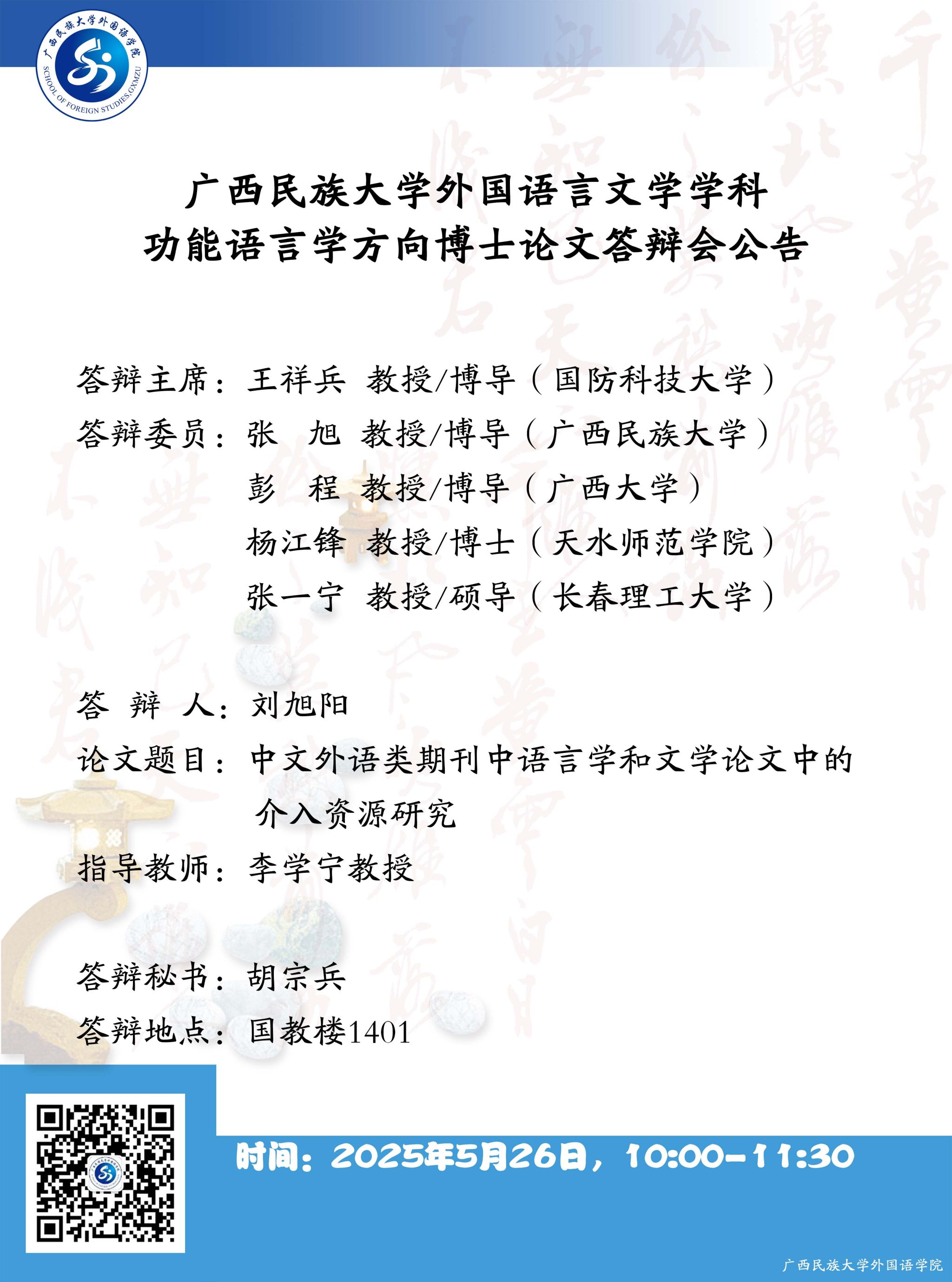 hy3380cc海洋之神外国语言文学学科功能语言学方向博士论文答辩会公告