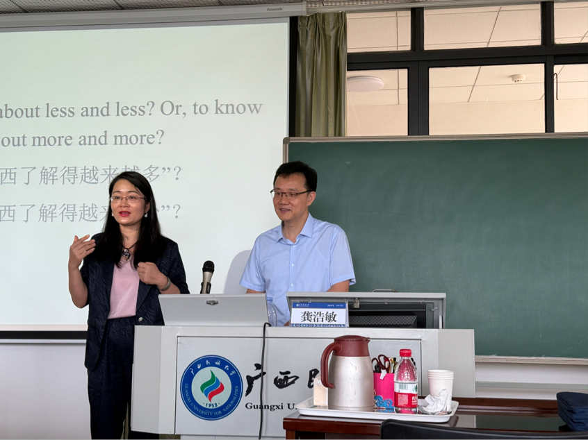本次讲座不仅深化了对“中国学派”的理解,也为比较文学研究的未来发展提供了新的思考方向。在随后的座谈会中,龚浩敏老师介绍了香港地区大学的研究生招生情况和培养模式,并与张旭教授等现场师生就AI高速发展中的人文学科研究与教学的困境和突破路径等问题展开深度对话。(初审:何云燕 复审:吕雅芬 终审:覃慧敏)