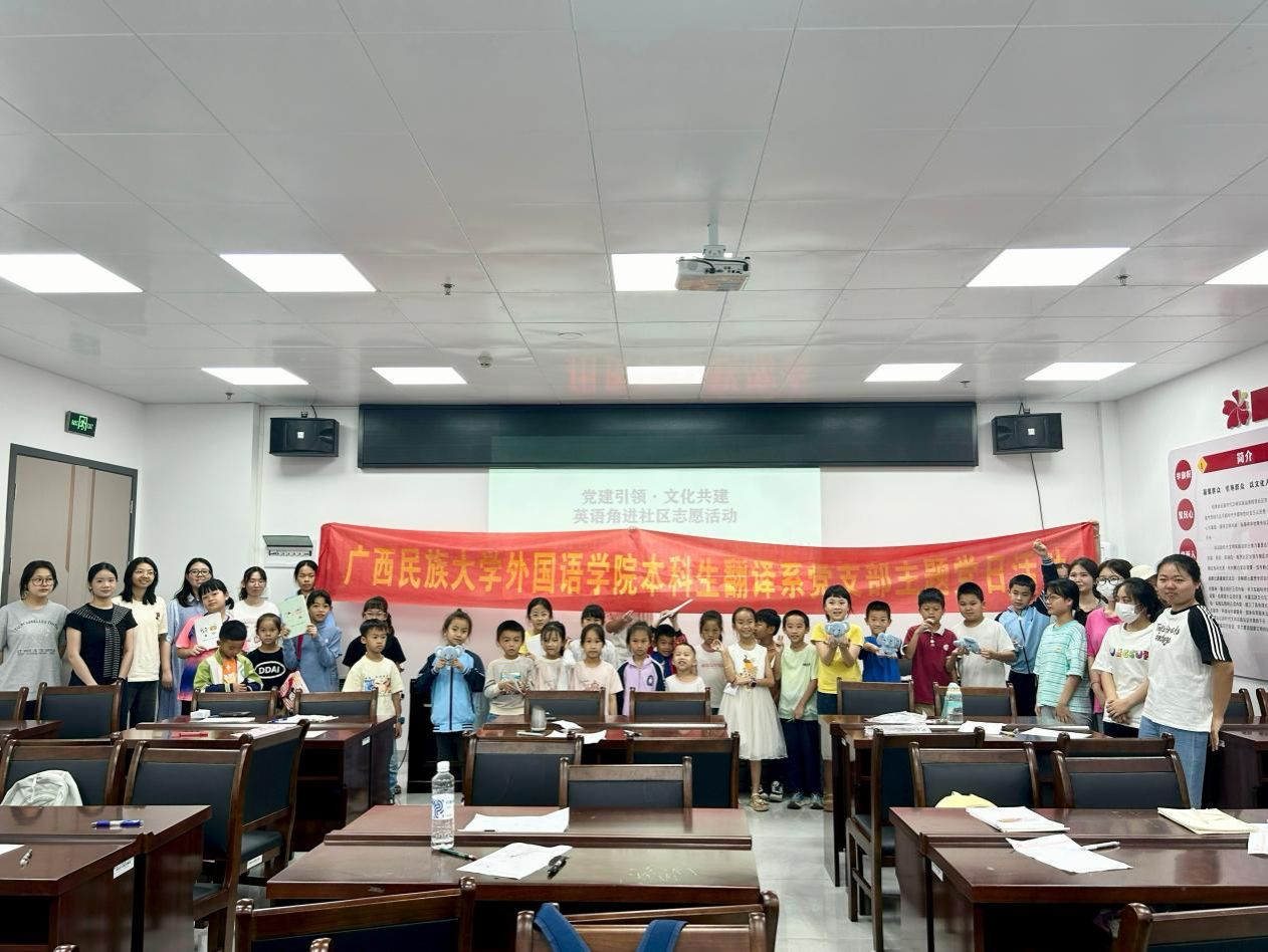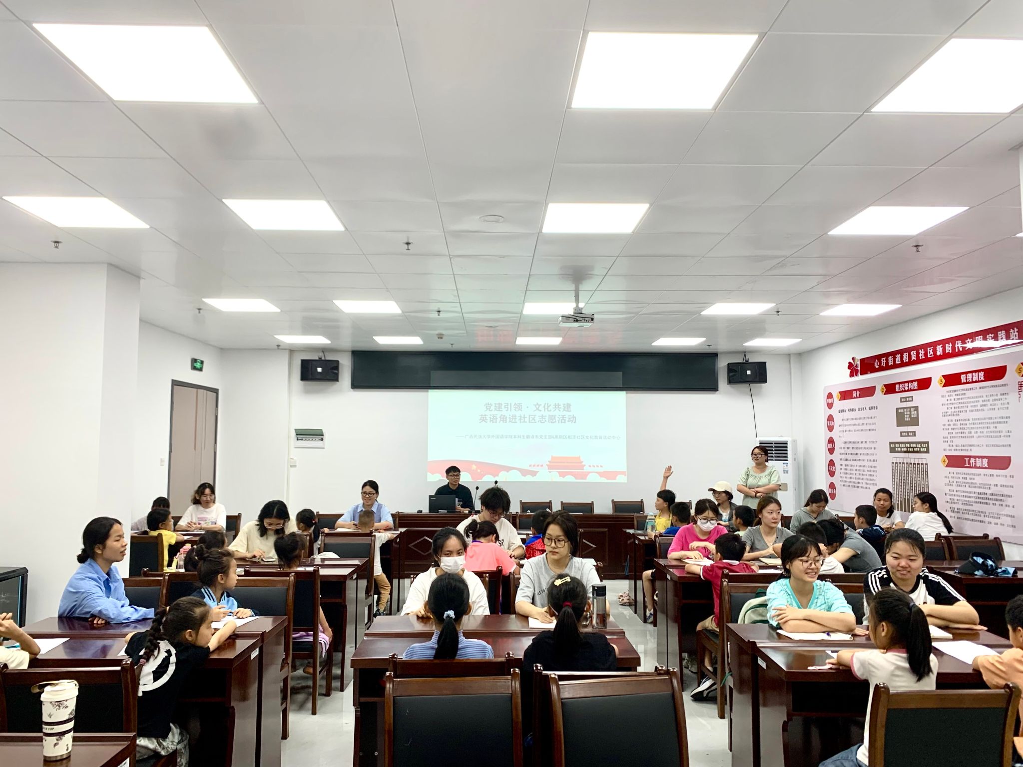 5月25日下午,hy3380cc海洋之神本科生翻译系党支部走进西乡塘相贤社区文化教育活动中心,开展英语角志愿活动。20余名党员志愿者与社区1至6年级员工共度一段充满趣味和收获的英语学习时光。
