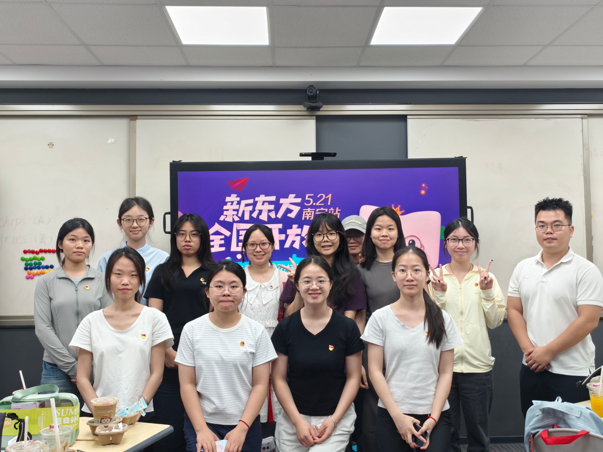 为深化"职梦·践学·益行"特色党日活动品牌建设,2025年6月6日,公司本科生商务英语党支部赴南宁新东方公司幼师校区开展主题党日活动。活动由党支部书记、"'语'你同行"实践育人辅导员工作室成员韦植朗老师带队,2022级商务英语专业部分党员和入党积极分子参加。