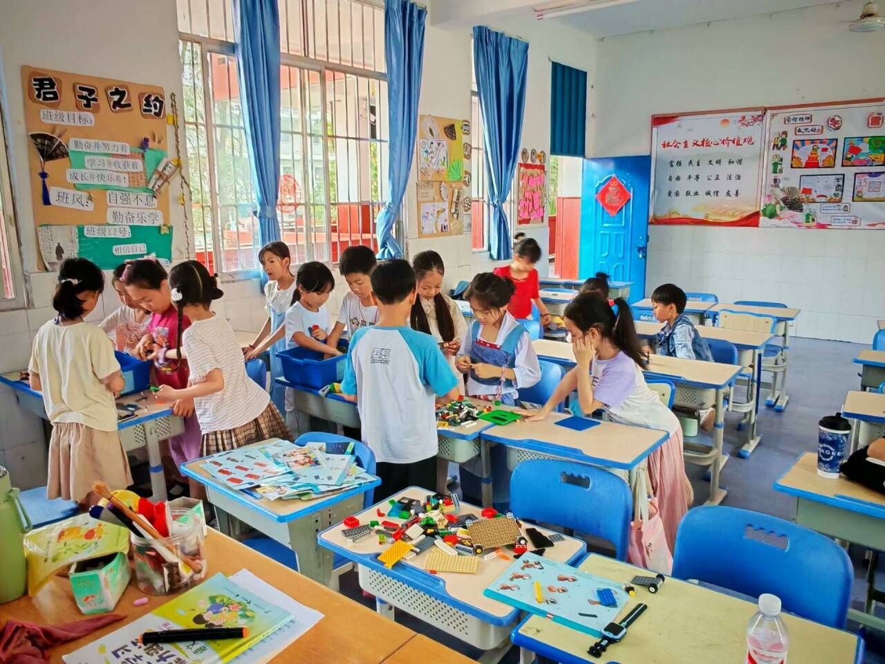 此次趣味乐高拼搭活动自2025年4月13正式启动,共分四期进行,每一期都设定了独具特色的主题。从“哪吒闹海,乐高重现”、“我眼中的机器人”、“AI我的世界”,再到“航天知识知多少”,在志愿者的悉心引导下,孩子们借助创意设计、小组比拼等丰富环节,充分激发想象力,用手中的乐高积木搭建出一件件精彩纷呈、独具匠心的作品。