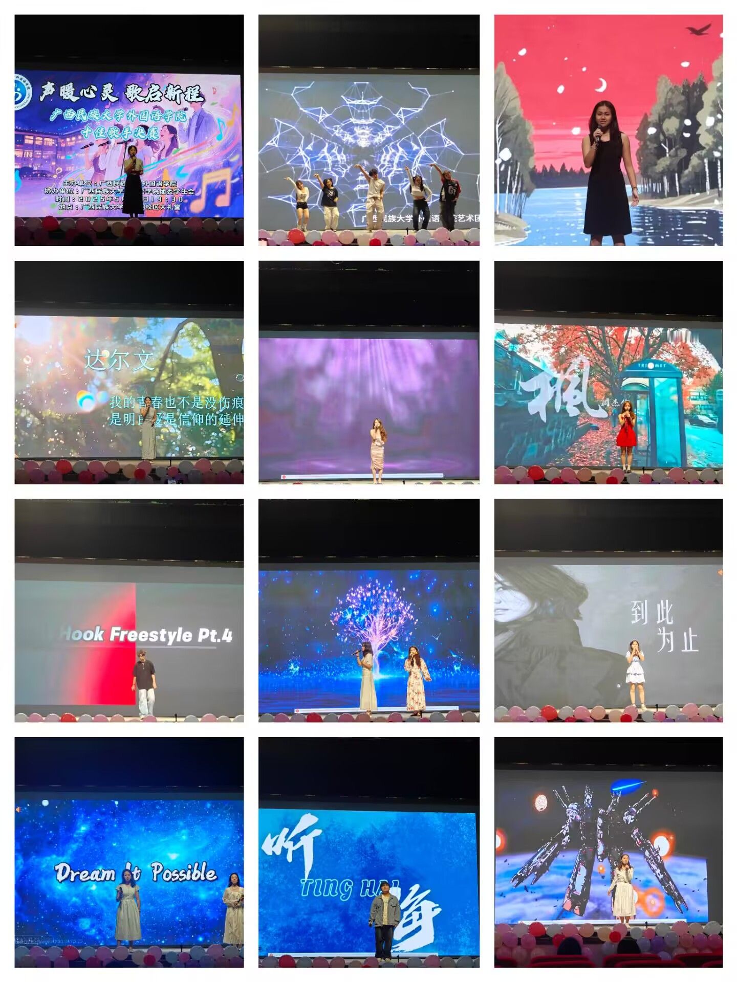 音符跳动,唱响青春旋律。开场,艺术团的同学们用一段热舞点燃了现场气氛。随后,选手们依次登场。他们带来的歌曲风格多样,不仅有悠扬婉转的中文民谣、韵律十足的中文说唱,还有激情澎湃的外文劲曲,每一首歌曲的演绎都十分动人心弦。各位选手们用歌声传递情感,展现青春风采。
