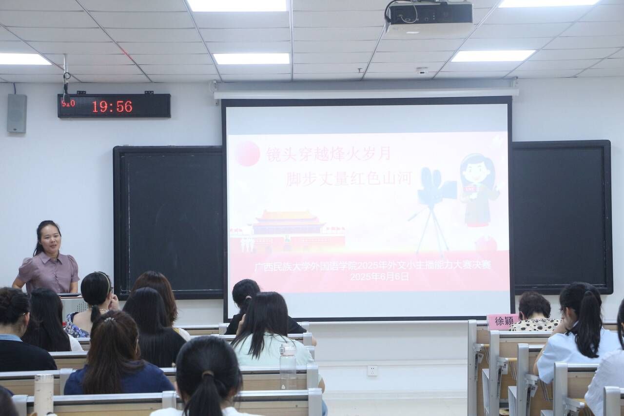 6月6日晚,hy3380cc海洋之神在国际教育综合楼910教室成功举办"镜头穿越烽火岁月、脚步丈量红色山河"外文小主播大赛。本次大赛创新性地采用外语模拟直播形式,要求参赛选手用外语讲述革命老区的历史文化和旅游特色,旨在通过专业实践提升员工外语应用能力,同时深化红色文化教育。