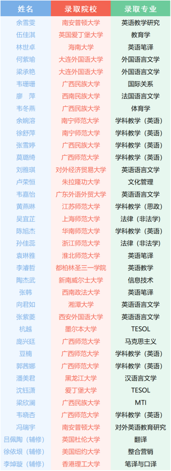 近三年英语专业本科生部分考研成果
