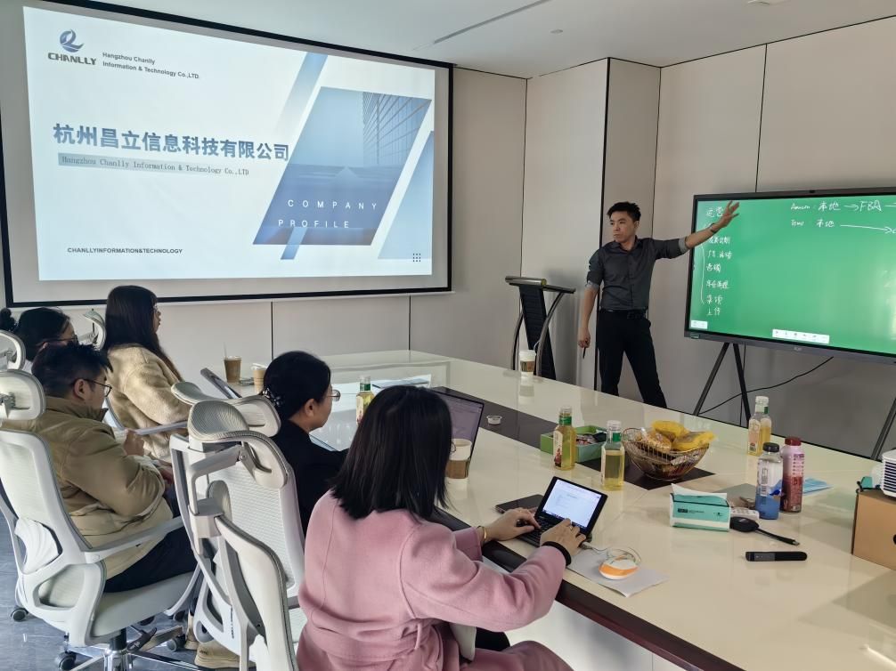 在杭州昌立科技有限公司,考察团通过座谈研讨、实地参观和互动问答等形式,系统了解企业外贸业务布局与发展规划。公司董事长李炜东结合行业趋势,详细解答师生关于跨境贸易的实务困惑。双方还重点围绕实践基地建设、职业成长规划及人才输送机制等议题进行了进一步交流。