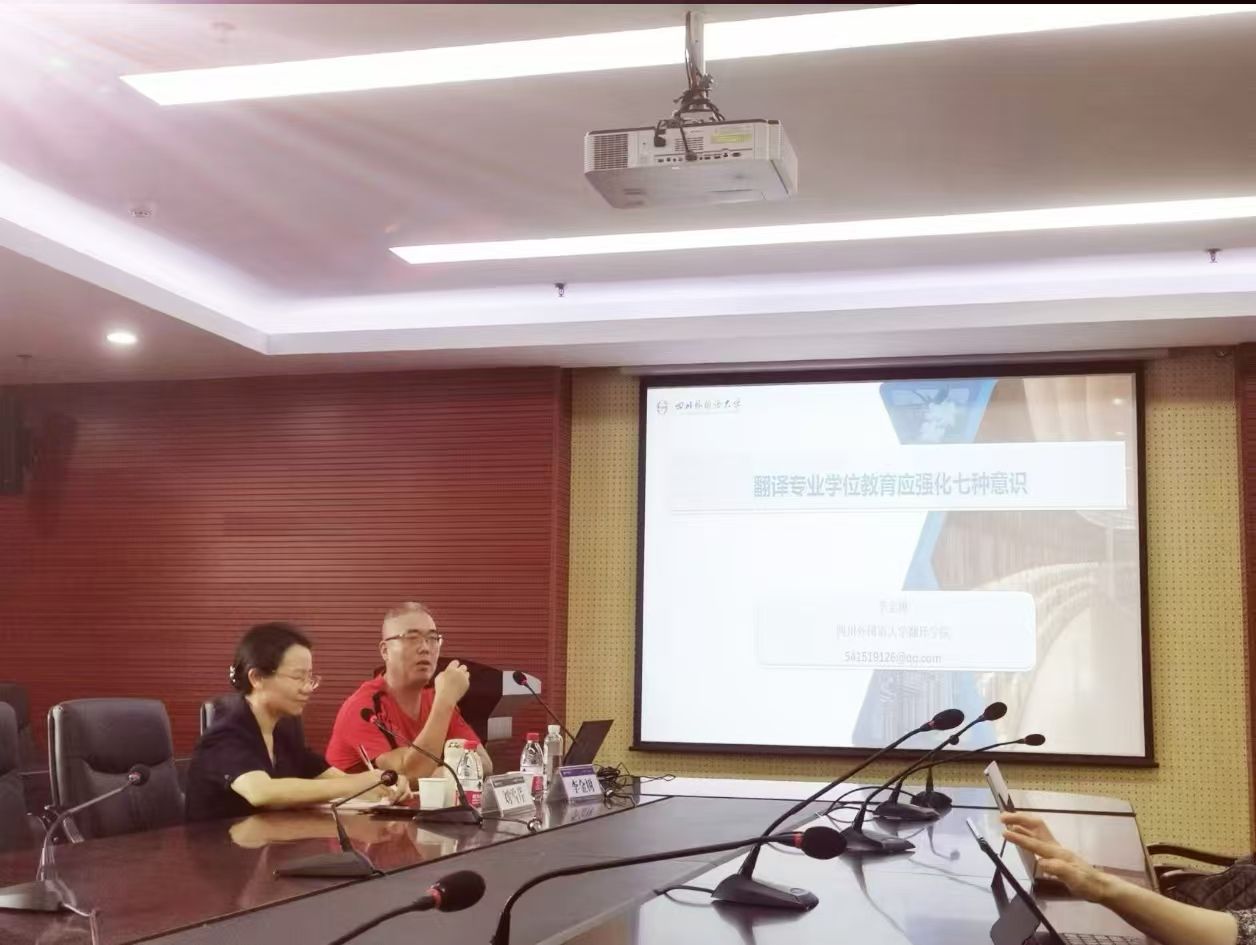 2024年10月18日下午,四川外国语大学翻译公司经理、博士生导师李金树教授应邀做了一场题为“翻译专业学位教育应强化七种意识”的讲座。讲座由MTI教育中心主任刘雪芹教授主持,hy3380cc海洋之神、东南亚语言文化公司翻译专业教师及MTI导师到场聆听。