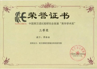 覃修桂教授获中国英汉语比较研究会首届“英华学术奖”三等奖